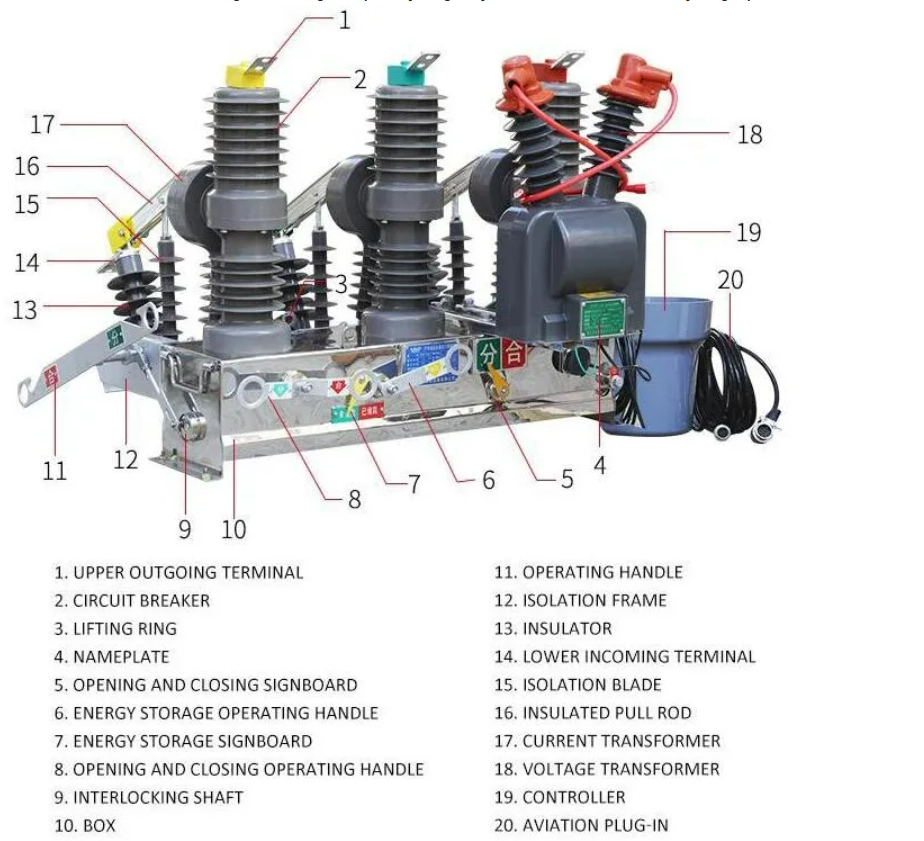 Può essere dotato di un meccanismo operativo a molla, che ha funzioni di base come rottura e chiusura della corrente di carico, corrente di sovraccarico e corrente di cortocircuito. È il tipo di base della serie ZW32-24. L'interruttore e l'interruttore di isolamento possono essere combinati per formare un "interruttore combinato" (di seguito denominato "interruttore combinato") con una frattura distinta. Sull'interruttore di isolamento, l'utente può scegliere di utilizzare la guaina isolante in gomma in silicone, che ha le caratteristiche di pioggia, neve, sabbia e anti-impollution e corrosione e può effettivamente evitare il congelamento e l'ossidazione dell'interruttore di isolamento.