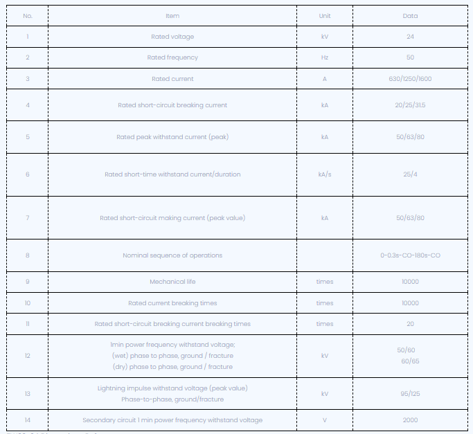 L'interruttore di circuito è conforme a standard tecnici come l'interruttore di circuito CA ad alta tensione GB1984-2003, DL T402-2007 Condizioni tecniche per ordinare l'interruttore CA ad alta tensione e le condizioni tecniche DL / T403-2000 per ordinare 12kV ~ 40,5KV ad alta tensione di interruzione del circuito asciutto.