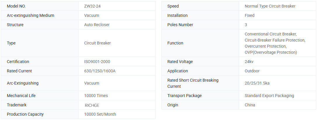 L'interruttore a vuoto ad alta tensione CA ZW32-24 (di seguito indicato come interruttore di circuito) è una tensione classificata di attrezzatura di distribuzione di energia esterna trifase da 24 kV da 24kV. Viene utilizzato principalmente per aprire e chiudere la corrente di carico, la corrente di sovraccarico e la corrente di corto circuito nel sistema di alimentazione. Corrente di sovraccarico e corrente di corto circuito. Adatto per sottostazioni e imprese industriali e minerarie nel sistema di distribuzione per scopi di protezione e controllo, più è adatto alla rete rurale e al luogo di frequenti funzionamento.