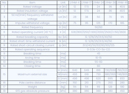 L'interruttore di interruttore di media tensione LYHM4 utilizza gas esafluoruro di zolfo (SF6) come mezzo di estinzione e isolamento. Il gas SF6 ha caratteristiche di rottura senza problemi e non ci sarà un fenomeno di intercettazione quando si rompe la corrente e non si verificherà una sovratensione operativa. Questa eccellente caratteristica assicura che l'interruttore abbia una lunga vita elettrica. E l'impatto sull'apparecchiatura durante il funzionamento, il livello dielettrico e lo stress termico non saranno influenzati.