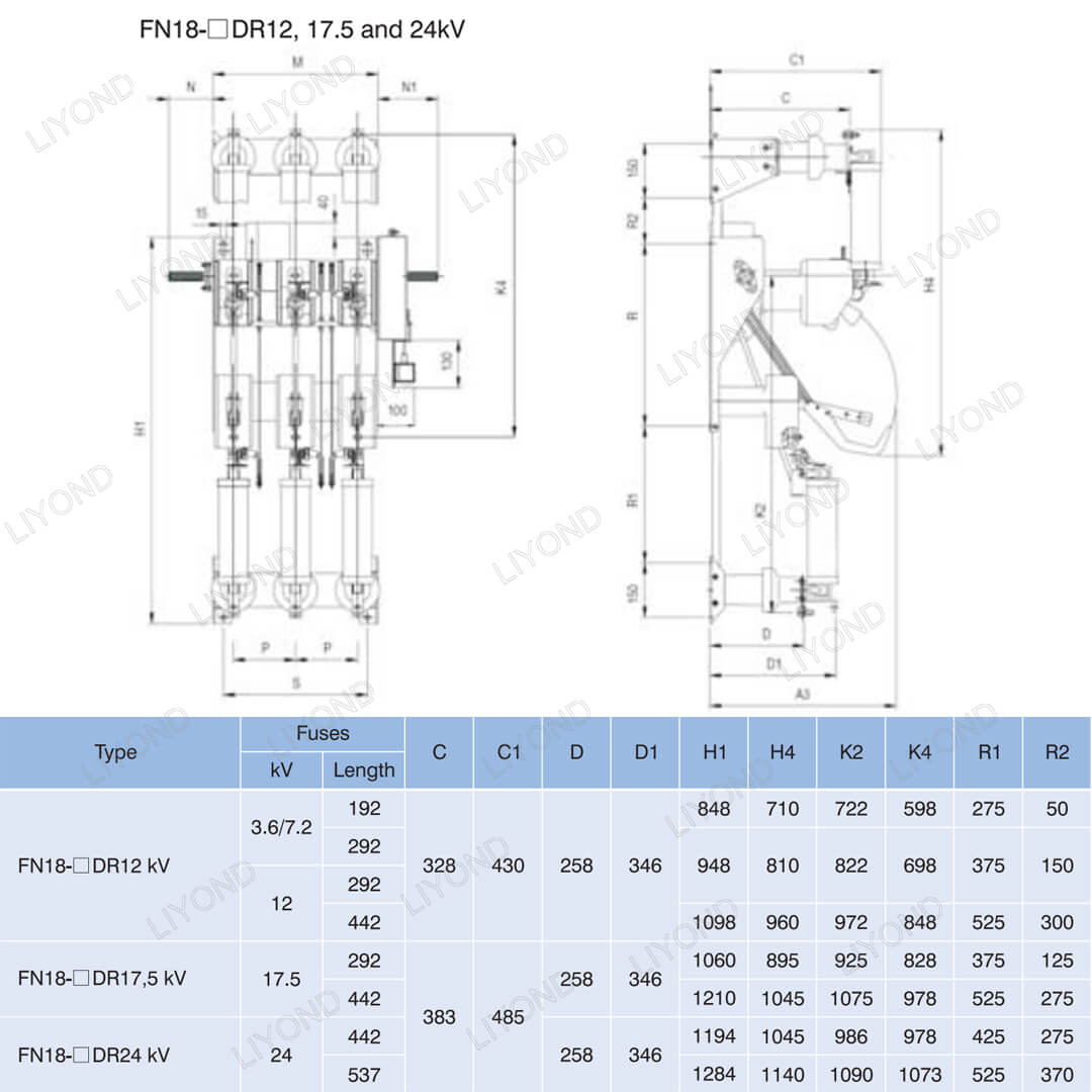 L'interruttore di carico ad alta tensione della serie FN18 presenta i vantaggi di facile progettazione, struttura, struttura compatta, piccolo volume, piena funzione, peso leggero, velocità di rottura e chiusura rapida e alta affidabilità. È adatto per AC 50Hz, tensione nominale 12KV, 24KV, corrente di corrente 630A e trifase, in particolare per i progetti di costruzione e ristrutturazione della rete cittadina, edifici a carico, alimentazione della rete ad anello di strutture pubbliche ed è un prodotto ideale per la sottostazione di tipo scatola e la protezione del trasformatore.