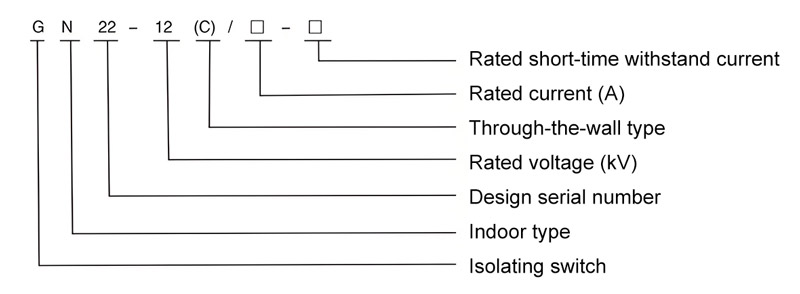 Serie GN22-12 (C) (D) Serie interne Disconnettore L'alta tensione Viene utilizzato nei sistemi di alimentazione con tensione nominale di 12kV, 50Hz e inferiore, per collegare, scollegare o convertire le linee in tensione ma senza carico.