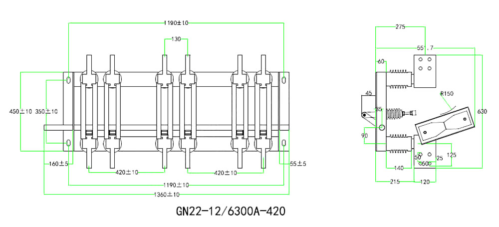 Questo prodotto è un interruttore di isolamento ad alta corrente con una struttura di coltello inferiore trifase. Adotta un prototipo di bloccaggio meccanico con un'azione in due fasi di chiusura e contatto, raggiungendo contatti senza usura, piccola forza operativa, alta pressione di contatto e buona stabilità termica dinamica.