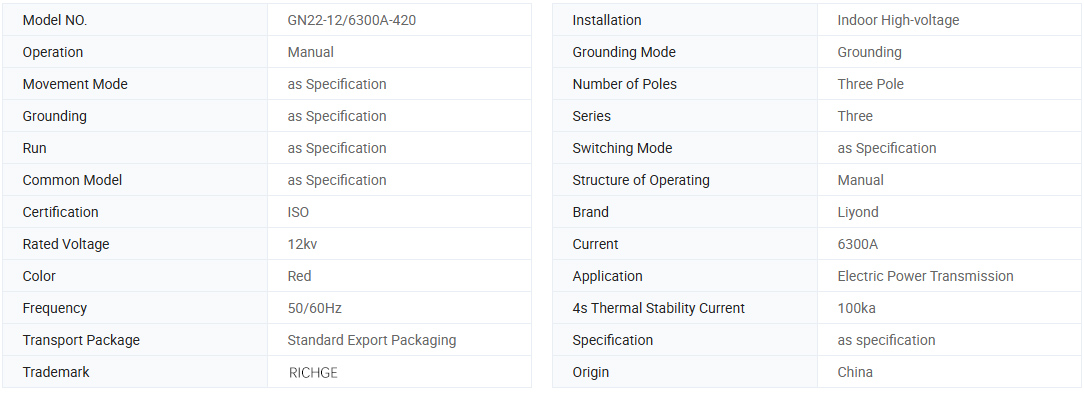 I quadri ad alta tensione con sezionatore ad alta tensione per interni serie GN22-12 (C) (D) vengono utilizzati nei sistemi di alimentazione con tensione nominale di 12 kV, 50 Hz e inferiore, per collegare, disconnettere o convertire linee sotto tensione ma senza carico.