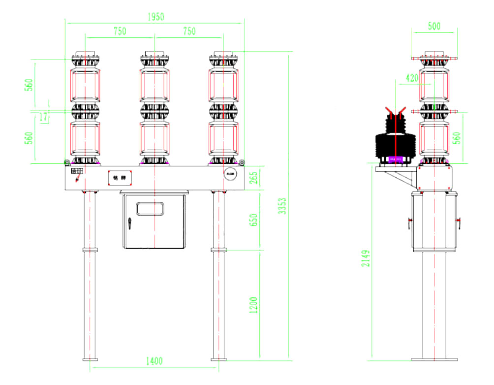Il prodotto ha eccellenti prestazioni di rottura, utilizza la camera di estinzione del tipo di aria di pressione, la vita elettrica è lunga, non sostituisce il gas esafluoride di zolfo, l'affidabilità meccanica è elevata, la vita meccanica è lunga, può funzionare frequentemente; Ogni set può essere dotato di trasformatori attuali 6-12 per la scelta dell'utente. Questo prodotto adotta il nuovo misuratore di densità del puntatore MKZ SF6, la lettura del manometro non è influenzata dalla variazione di temperatura, facile da usare.
