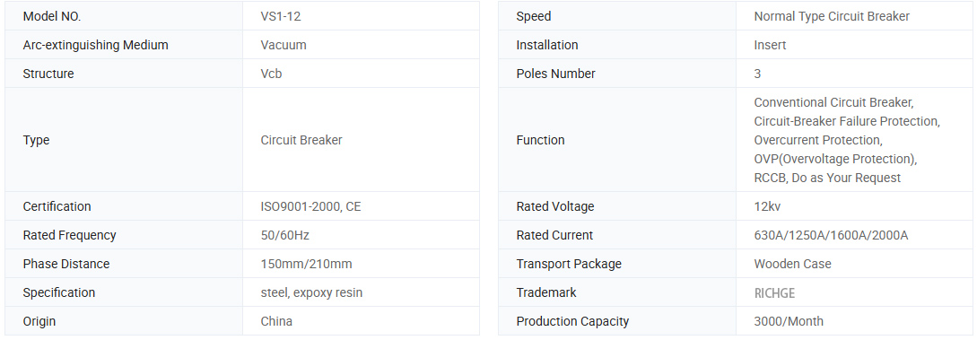 VS1 (Zn63A) -12series di interruttore a vuoto interno con cilindro isolato comune è a tre frasi a.c. 50 Hz di distribuzione di energia interna con la tensione nominale di 12kV. È utilizzato per proteggere il controllo delle apparecchiature elettriche nei campi dell'industria e delle imprese minerarie, delle centrali elettriche e della sottostazione. A questo tipo di interruzione del vuoto è conforme agli standard nazionali e alla stipulazione dello standard IEC, la capacità raggiunge il grado di M2-E2-C2.