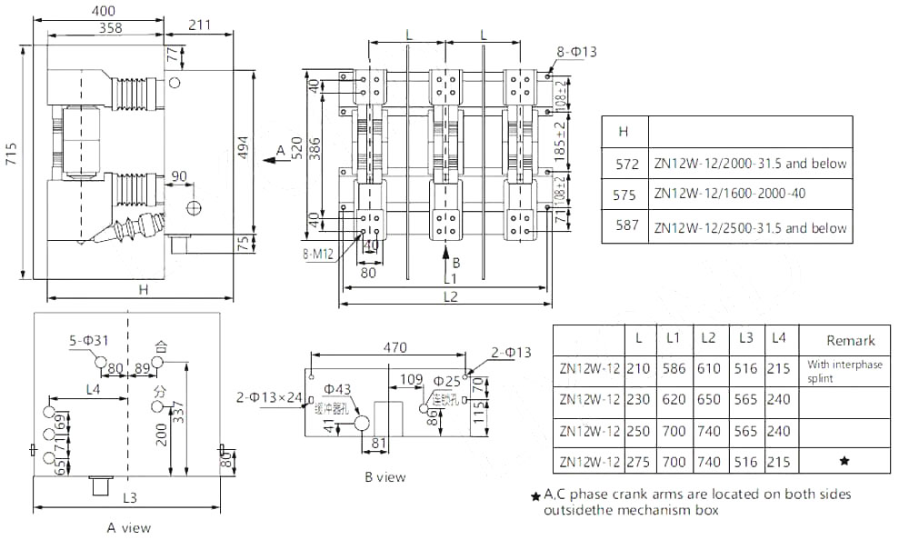 Gli interruttori a vuoto in serie Zn12 sono dispositivi di quadro ad alta tensione interni con tensioni nominali di 12 kV, 24kV e 40,5 kV e trecase AC 50Hz. È un prodotto domestico sviluppato introducendo la tecnologia Siemens 3AF tedesca. Il meccanismo operativo dell'interruttore è un tipo di stoccaggio di energia a molla, che può essere gestito da AC o DC o manualmente. L'interruttore ha una struttura semplice, una forte capacità di rottura, una lunga durata e funzioni di funzionamento complete. E non vi è alcun pericolo di esplosione e la manutenzione è semplice. È adatto al controllo di controllo o di protezione dei sistemi di trasmissione e distribuzione di potenza come centrali elettriche, sottostazioni e imprese industriali e minerarie, in particolare adatti a morire carichi importanti e frequenti luoghi di funzionamento. La forma di installazione dell'interruttore nel mobile a interruttore può essere un tipo di interruttore di tipo fisso o di tipo prelievo. Questo prodotto è conforme agli standard pertinenti come GB1984, JB3855 e IEC62271-100 "Interruttore CA ad alta tensione".
