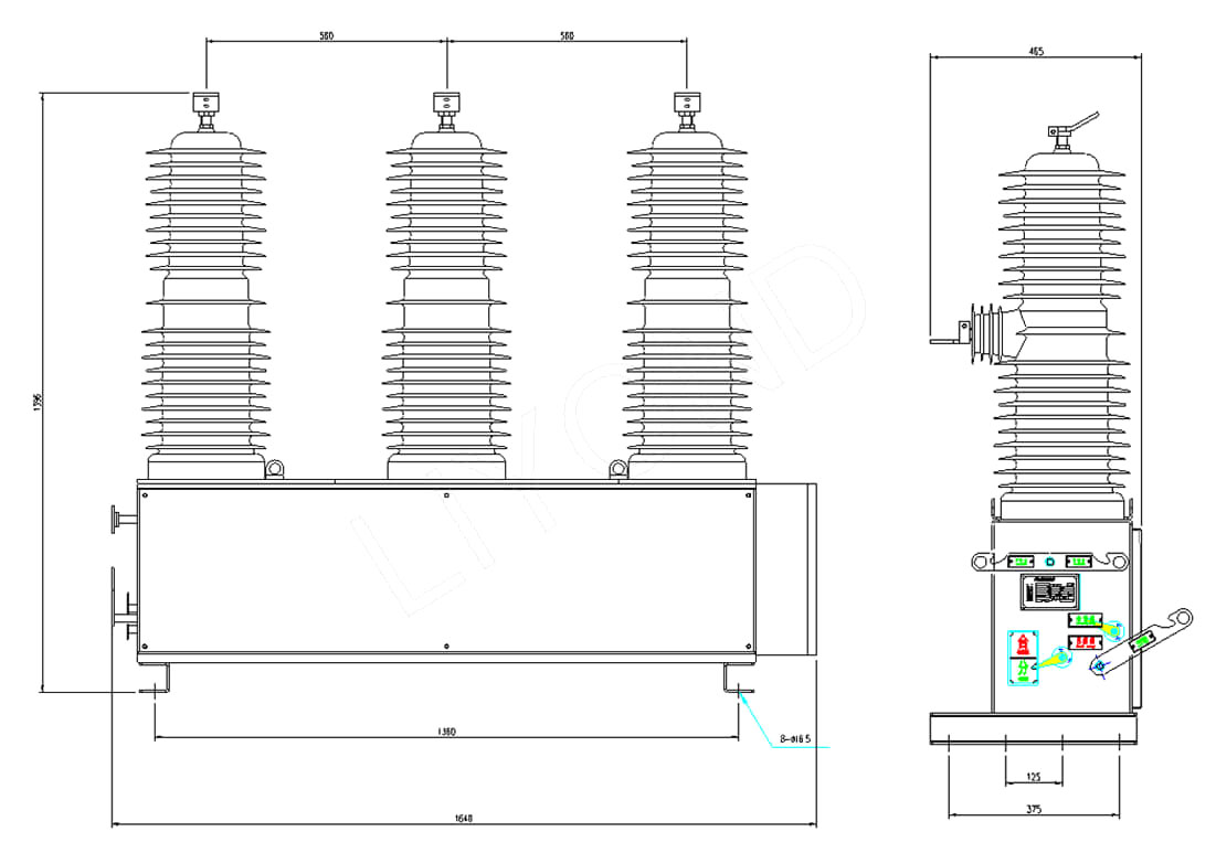 Gli interruttori del vuoto ad alta tensione della serie ZW32-40.5 sono utilizzati in sistemi di alimentazione trifase con AC 50Hz e tensione nominale di 35kV, come mezzo per separare e combinare corrente di carico, corrente di sovraccarico e corrente di corto circuito. L'interruttore può essere dotato di controller di reclinazione per identificare le caratteristiche di corrente e ottenere più reclinazione automatica, PT auto-fornito come fonte di alimentazione per diventare un interruttore intelligente con tensione e uscita del segnale di corrente e può essere controllato; dal PT elettronico per fornire energia e può completare il ritardo di sovracorrente, il ritardo della corrente invocata, la protezione dei compositi a tre stadi a corto circuito.